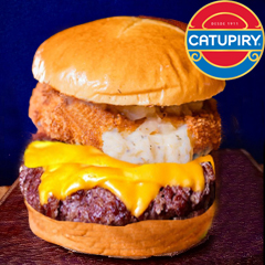Pão brioche selado na manteiga, blend carne 110g, queijo muçarela, queijo cheddar em fatias derretido, catupiry empanado e molho especial