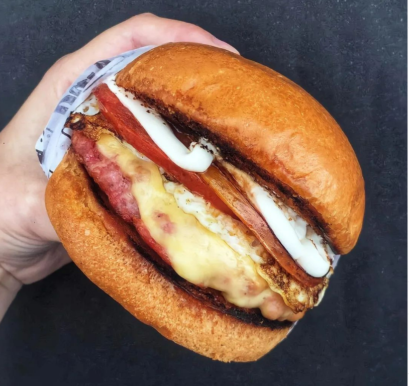 Pão brioche selado na manteiga, blend carne 110g, provolone crocante, queijo muçarela, queijo cheddar derretido e molho especial